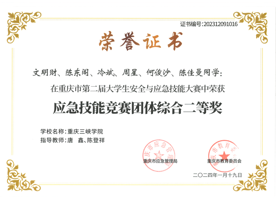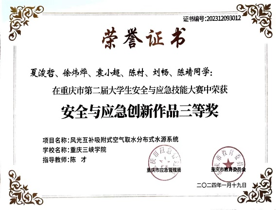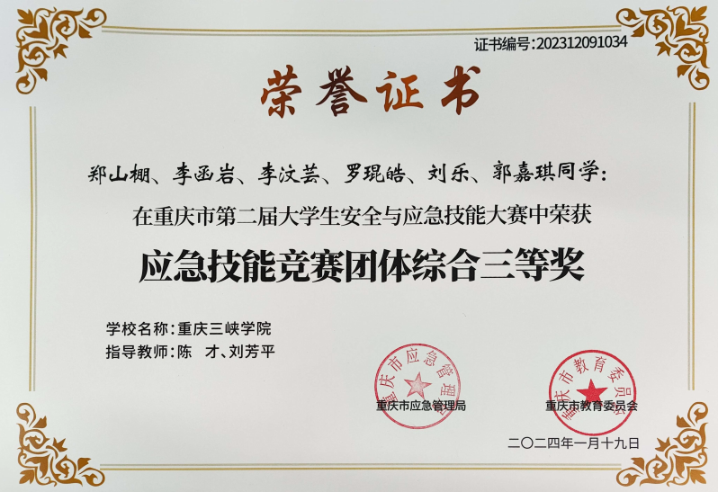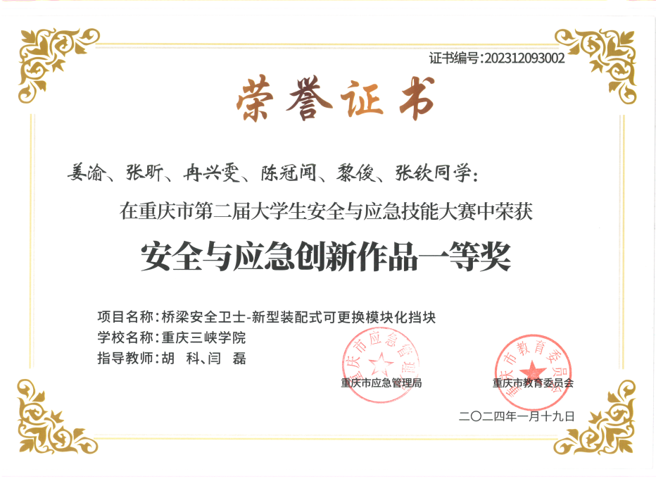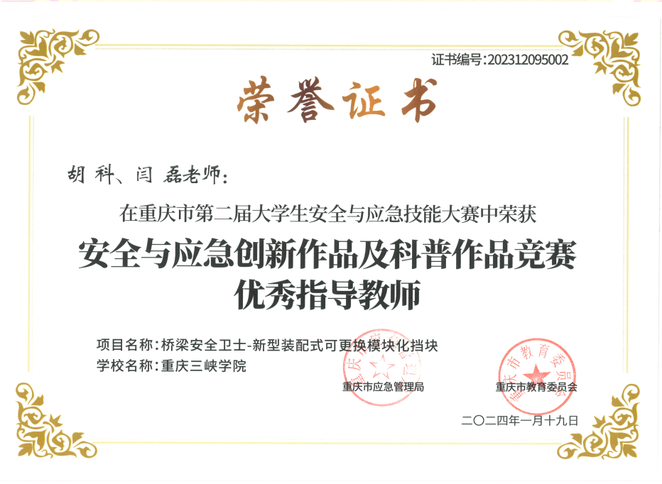 近日,重庆市应急管理局、重庆市教育委员会通报了关于重庆市第二届老员工安全与应急技能大赛获奖情况,公司bevictor伟德官网院学子共获得6项奖励(一等奖1项,二等奖2项,三等奖3项),胡科、闫磊获得优秀指导教师。