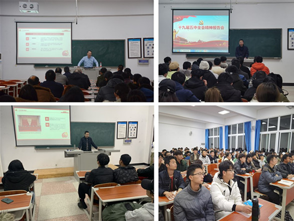 党总支高度重视,认真筹备宣讲活动,组建了由党总支成员、党支部书记、辅导员及骨干教师组成的院级宣讲团,召开宣讲工作布置会暨集体备课会。12月10日,公司党委常委、副董事长臧小林为公司全体教职工及机关一总支三支部全体同志共89人开展宣讲;12月6日-12月10日,公司宣讲团队为全体在校本科生和研究生开展宣讲,宣讲场次共10场,涉及26个班级,共1094人,基本实现宣讲师生全覆盖。