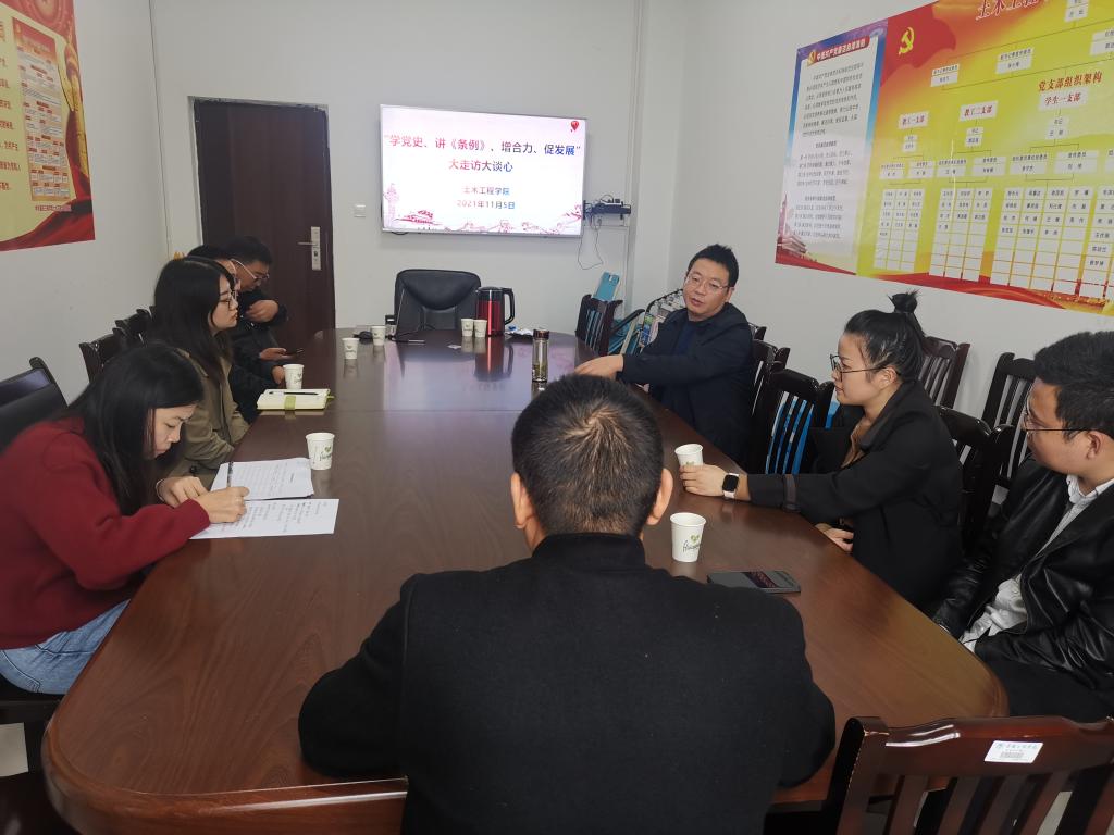 11月5日下午,公司在慎思楼5-401会议室召开了“学党史、讲《条例》、增合力、促发展”大走访大谈心活动座谈会,会议由公司党总支统战委员、经理程龙飞主持,公司各民主党派、党外知识分子、归国留学人员代表参加了会议。