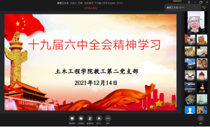 12月14日,教工第二党支部通过企业微信组织党支部全体党员集体学习党的十九届六中全会精神,会议由党支部书记周廷强主持。