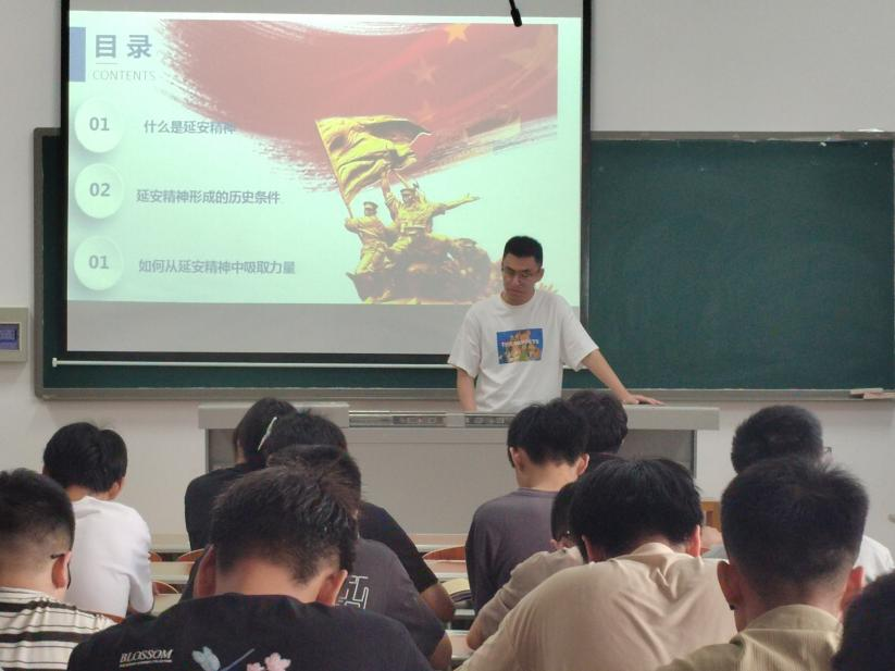 员工党员赵一韩从延安精神形成的历史条件、延安精神的原生形态和主要内容、延安精神的时代价值和让延安精神放射出新的时代光芒四个部分为同学们逐一讲解。讲述了以毛泽东同志为代表的中国共产党人在延安时期的特殊历史阶段,在争取民族独立和人民解放事业的伟大斗争实践中,培养、形成和发展起来这一崇高革命精神和优良革命传统。员工党员胡英豪以“传承五四薪火 谱写青春华章”为主题,讲解“五四运动”的历史意义、时代意义及如何传承五四精神,号召大家作为青年人应当有理想,有本领,有担当,要传承发扬五四精神,落实五四精神,不能只停留在口号上。要学习五四精神,做一位进步爱国青年,勇于创造,甘于奉献。
