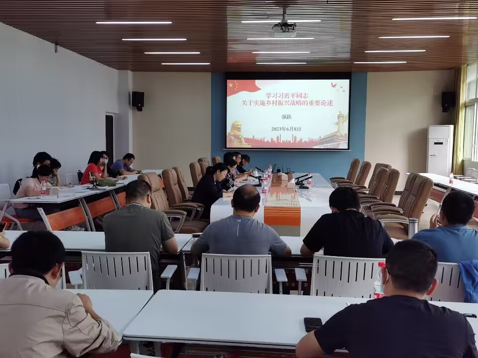 第一阶段,结合公司党总支的主题教育调研,公司副经理强跃领学了“深入理解乡村振兴战略的总要求”“乡村振兴战略规划”“新时代“三农”工作总抓手新旗帜”等内容。他强调,实施乡村振兴战略是一项长远任务,必须坚持问题导向,作为高校教师,我们要立足岗位学思想、见行动,学深悟透习近平总书记关于乡村振兴战略的指示,增强的责任感使命感,以锐意进取、担当作为的精气神,结合专业深入开展科学研究,服务乡村振兴。