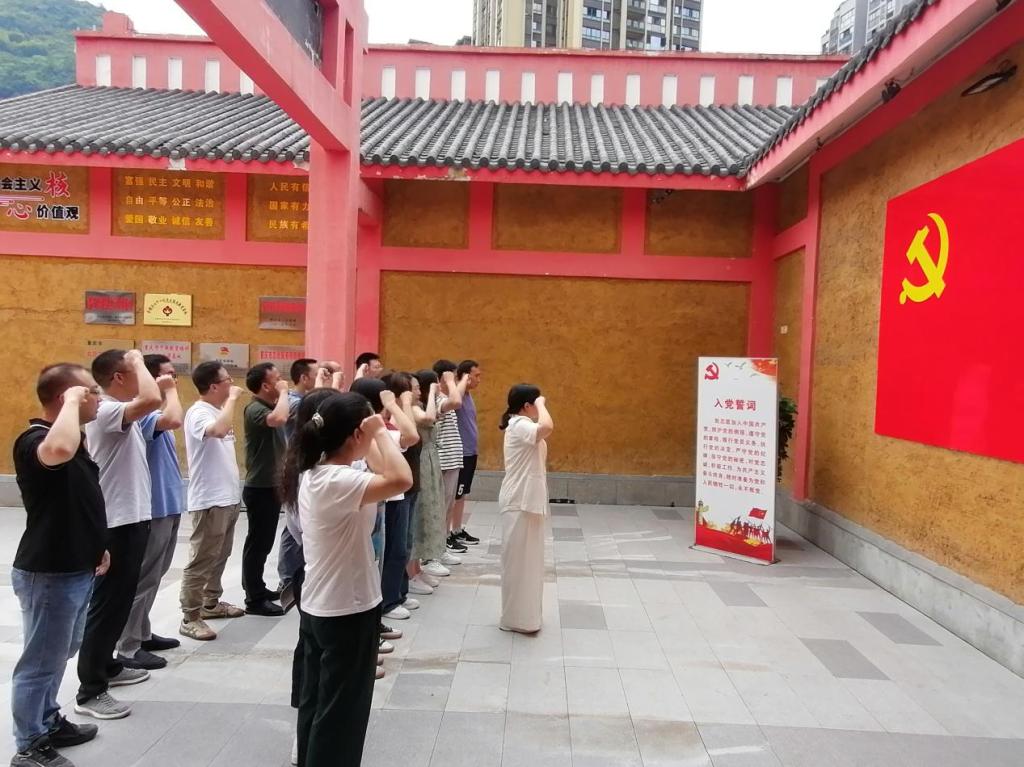 城口县苏维埃政权纪念公园内,全体成员在讲解员的带领下参观了川陕苏区城口纪念馆,了解了城口苏区的建设和发展历史,追忆缅怀李家俊、王维舟创建川东游击队和徐向前、李先念、许世友等老一辈革命家率领红四方面军在城口作战的光辉事迹和革命足迹,讲解结束后,全体党员同志在公司党总支书记罗雪的带领下,庄严举起右手,面对鲜红的党旗重温入党誓词。