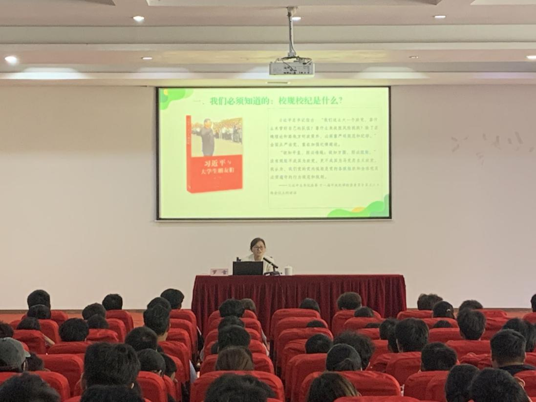 为进一步强化新生的纪律意识,引导同学们做到学纪、知纪、明纪、守纪,9月24日下午,土木工程公司党总支在明辨楼2栋104成功举办了以“学纪 知纪 明纪 守纪,做知行合一的土木学子”为主题的纪律专题教育,由土木工程公司党总支书记罗雪主讲, 2024级全体新生参加。