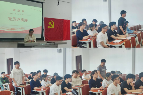 在党员“说”清廉环节中,员工党员们结合自身情况依次发言。党员童凡涛谈到要深知学术研究的严谨性与重要性,遵守学术规范,以高度的责任感和使命感,营造风清气正的学术环境;党员苏崇扬表示,即将走上工作岗位,将时刻以贪腐实际案例为警醒,秉持“不敢腐、不能腐、不想腐”的廉洁理念,严格遵守职业道德与法律法规,自觉抵制各种诱惑,做到廉洁奉公、勤勉敬业,以实际行动践行党员的清廉本色;党员邱俊杰谈到,作为员工党员,要时刻牢记党员身份,带头遵守校规校纪,以身作则,树立良好榜样,主动向身边同学宣传校规校纪和诚信考试的重要性,带动更多同学共同营造风清气正的校园环境。党员秦彬莉、陈明福、陈星宇等也结合实际情况交流发言。