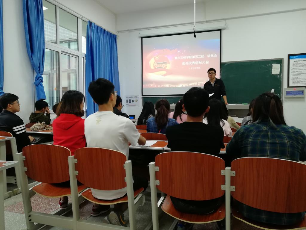 会上洪鹏解读了《共青团中央关于印发<中国共产主义青年团基层组织选举规则>的通知》(中青发[2016]15号)、<关于转发《高校员工代表大会工作规则》的通知>(渝青发[2017]64号)文件和校团委《参会须知》文件,洪老师还强调了五年一次团、学会的重要性;并对全体代表提出要求希望和要求,望全体代表能够高度重视会议,认真对待,积极参会,遵守会议纪律,认真履行代表职责,严格遵守会议要求,得体着装,充分体现出三峡学子的良好精神风貌。