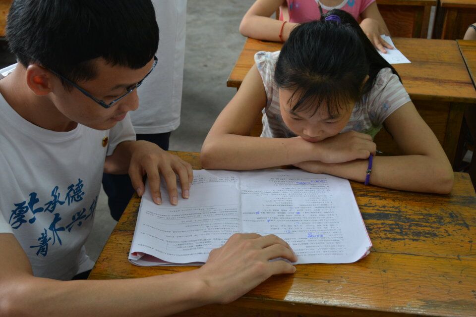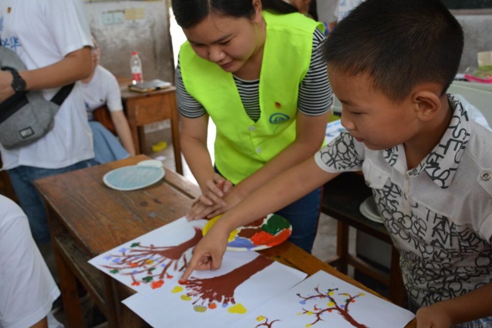 在教室内,服务队成员对孩子们进行了暑期作业辅导,孩子们认真的倾听志愿者的讲解。专注的神情,澄澈的眼神展现出他们对于知识的渴望。除了对作业的辅导外,服务团队还教孩子们一些简单的折纸,锻炼他们的动手能力。纸鹤、鲜花、游船等各式各样的折纸从孩子们手中栩栩如生的变出。孩子们还在志愿者的启迪下,在白色纸张上描绘出了自己心中的彩色画卷。