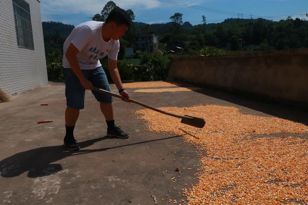志愿者们走进甘宁镇甘宁乡吴奶奶家,用实际行动为吴奶奶送去夏日的清凉。时值酷暑,吴奶奶家正在剥玉米,左右两户人家的玉米加起来足足堆了半个屋子。教育关爱服务实践团共24位志愿者一到吴奶奶家就开始干起活儿来,帮助吴奶奶剥玉米,晒玉米粒。志愿者们在劳动过程中与吴奶奶热情的聊着家常,并在过程中向吴奶奶耐心细致的讲解国家的扶贫政策和当地政府落实国家扶贫政策的相关举措。临走前,吴奶奶紧紧抓住志愿者的手,对志愿者们表示十分的感谢,吴奶奶说“这些玉米是我们前后两户一起的,我们自己剥至少得剥两天。现在国家政策好,你们这些老员工都好,帮我们干活儿,还清扫屋子,我们老俩口的日子也越过越好了。”