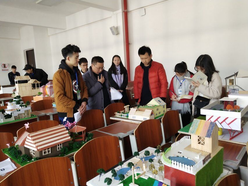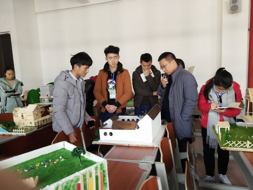 大赛开始,进入复赛的36组选手带着完善后的作品陆续到场,将手中的作品交由工作人员带入评审会场。他们脸上洋溢着因自己制作的成果而带来的喜悦与激动之情。此刻,拿不拿名次、输赢已经相对不那么重要了。2:40分,提交作品时间截止。3:00准时,毛海涛教授与建筑协会会长喻国根带领着评审团,就主题“紧跟绿色环保理念,不忘中国建筑文化辉煌”对各参赛选手的作品发表了他们的看法,各组参赛选手代表对自己的建筑理念、构思进行介绍,毛教授和评审老师对每一个建筑模型都发表了意见并指出其不足之处并点明了亮点之处。下午17:00经过毛教授与评审老师的反复思考,从进入复赛的36组作品中选出了进入决赛的14组作品。