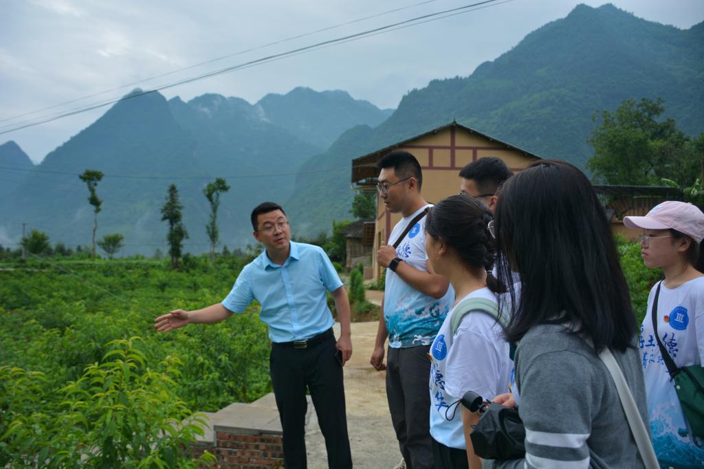 实践团一行又乘车前往关面村,参观了美香桃扶贫产业基地,漫步在干净美丽的村道上,看到路旁果树上挂出的颗颗幼果,同学们都能够看到未来美香桃能带动当地百姓达到业兴、家富、人和、村美的美好生活局面。经了解该村积极探索深度融合易地扶贫搬迁与产业发展,把细碎、分散、沉睡的各种资源转化为资产,整合优势产业平台,设立美香桃种植农民专业合作社,通过财政补助资金作为壮大集体经济入股专业合作社进行固定分红,产业基地实行大基地小单元管理模式,分化单元,确保管护责任落实到人。