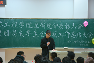会上,团总支员工副书记陈明浩对本学期各个部门开展的工作进行了概述,提出了下学期的工作要求。员工会主席陈松宣布了优秀干事的名单并颁奖。最后,公司团总支副书记洪鹏老师做了总结发言,告诫全体团学干部干事要不忘初心,热爱初心,坚守初心,强调发现不足才是促使我们进步的动力,同时为团学会送出了最诚挚的祝愿。