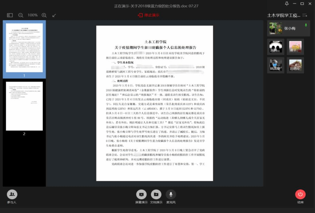 之后,与会人员就各年级员工疫情防控、网课学习、毕业生就业等工作作了汇报交流、经验分享和深入探讨。