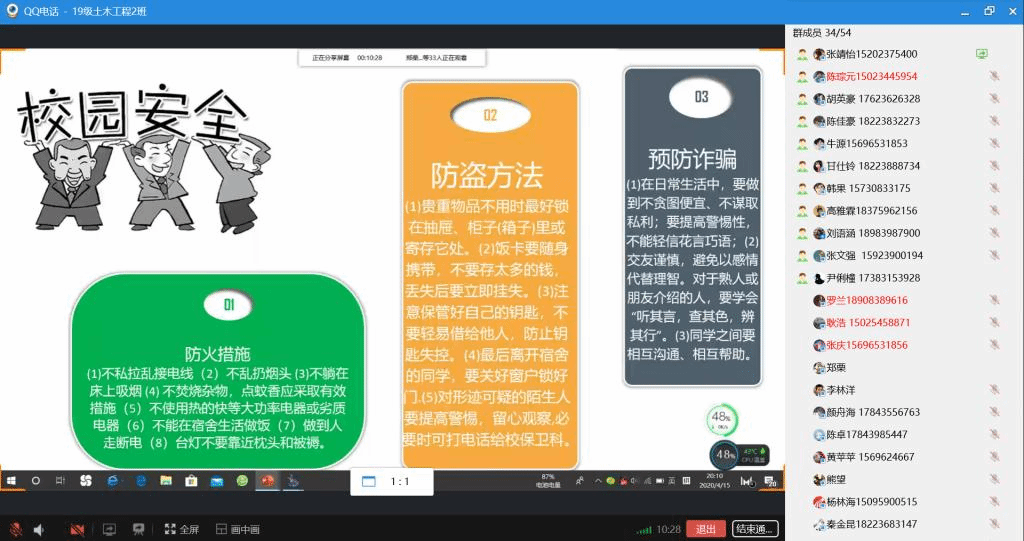 为了增强员工安全防范意识,提高员工的安全防范能力,bevictor伟德官网院2019级各班于4月15-16日在辅导员谭平的组织下开展“安全教育”线上主题班会。