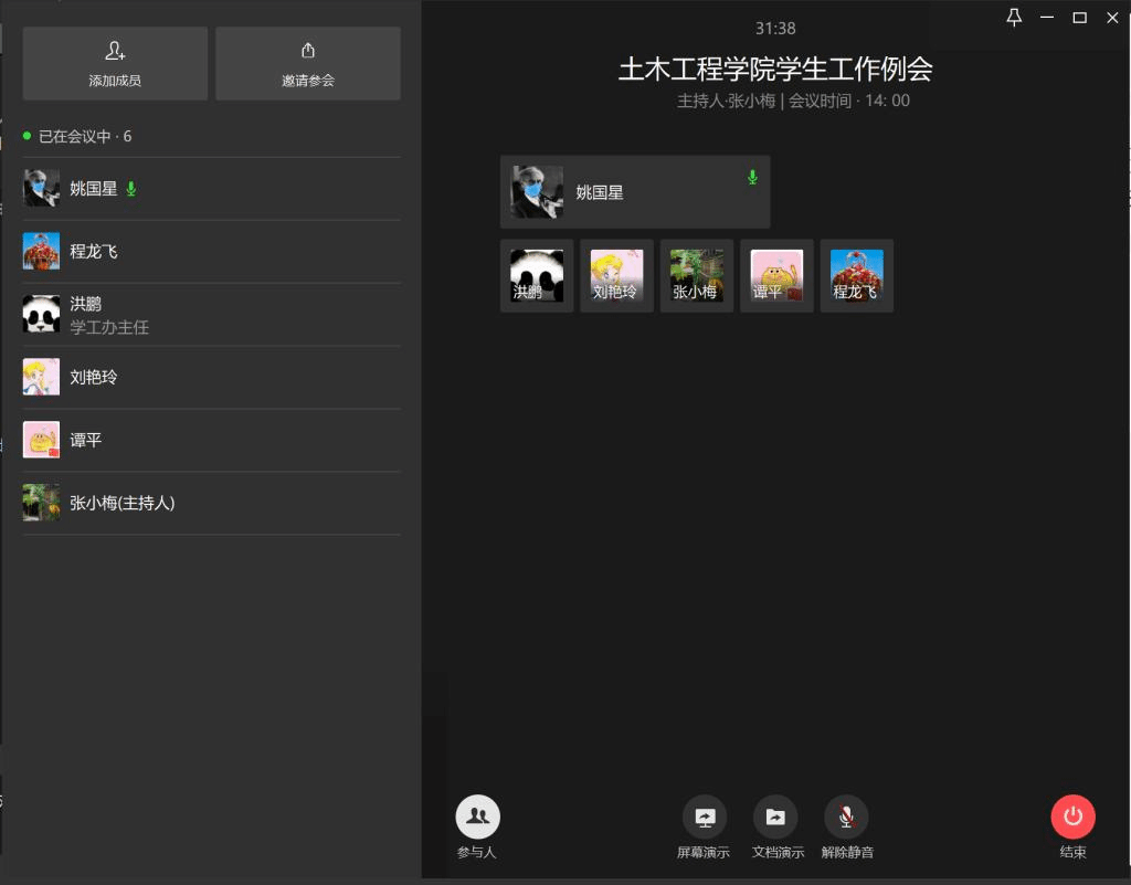 为有效推进本学期员工工作,4月24日下午,公司利用企业微信平台召开了员工工作视频会。会议由党总支副书记张小梅主持,全体辅导员参会,公司经理、副书记程龙飞到会指导。