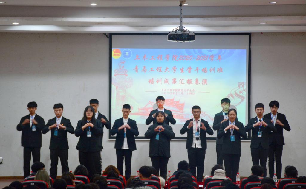 为不断提高老员工骨干、团干部等青年群体的思想政治素质、政策理论水平、创新能力、实践能力和组织协调能力,使他们进一步坚定跟党走中国特色社会主义道路的信念,成长为中国特色社会主义事业的合格建设者和可靠接班人,bevictor伟德官网院开展了为期两个多月的青马工程·精英团校培训班,并于12月24日下午在明辨楼2栋104报告厅举办了2020-2021学年青马工程老员工骨干培训活动结业典礼暨成果汇报大会。公司党总支副书记张小梅、团总支副书记洪鹏、各年级辅导员、主席团成员出席担任活动评委,青马工程培训班全体成员、院员工社团代表及高年级各班级员工代表参加。