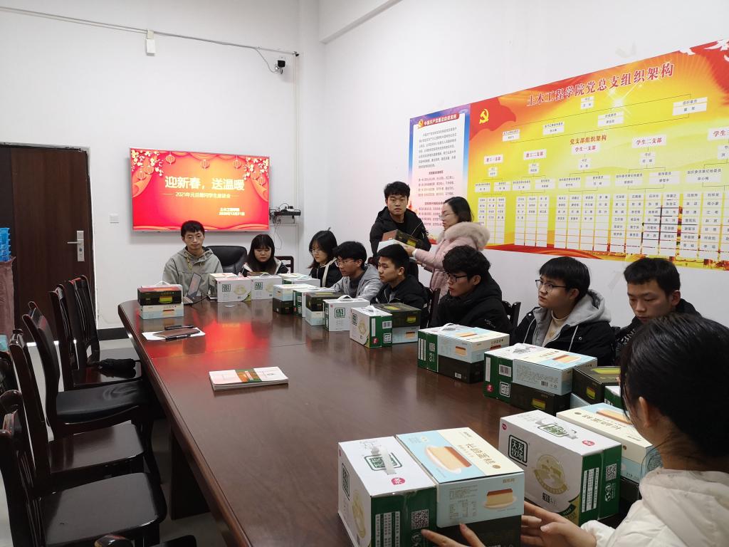 最后,张小梅代表公司给同学们发放了牛奶、蛋糕等慰问品。同时,公司给家庭经济特别困难的员工提前发放了300元/人的寒假返乡费。