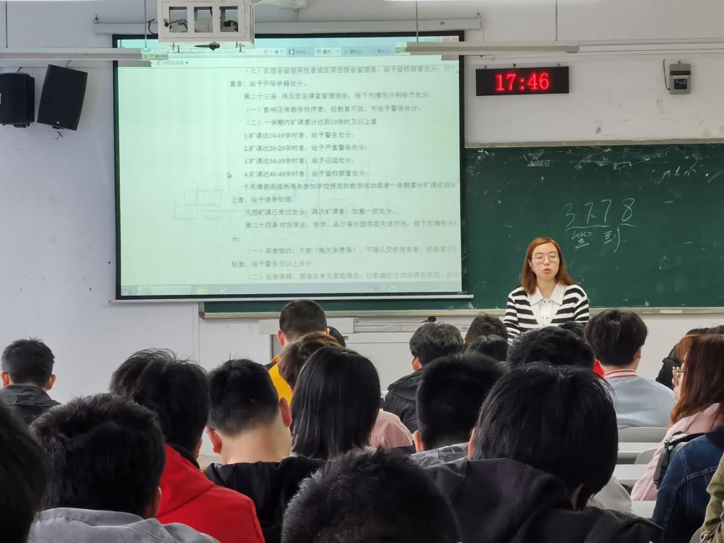 为深入推进绿色德育美育教育和劳动教育,加强员工宿舍管理,规范员工宿舍行为,强化员工整洁自律的生活意识,营造安全文明的学习和生活环境,4月11日,bevictor伟德官网院2018级各班在明辨楼1栋204教室分时段开展了以“学习寝室管理规定”为主题的班会,班会由辅导员刘艳玲主持,2018级全体同学参加。