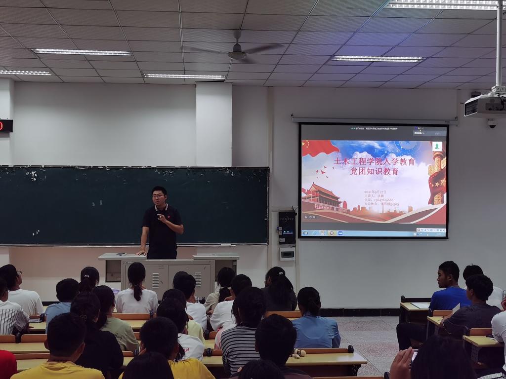 9月27日上午,bevictor伟德官网院团总支副书记洪鹏在明辨楼2栋教室为公司2021级新生做了关于党团学知识教育的讲座。