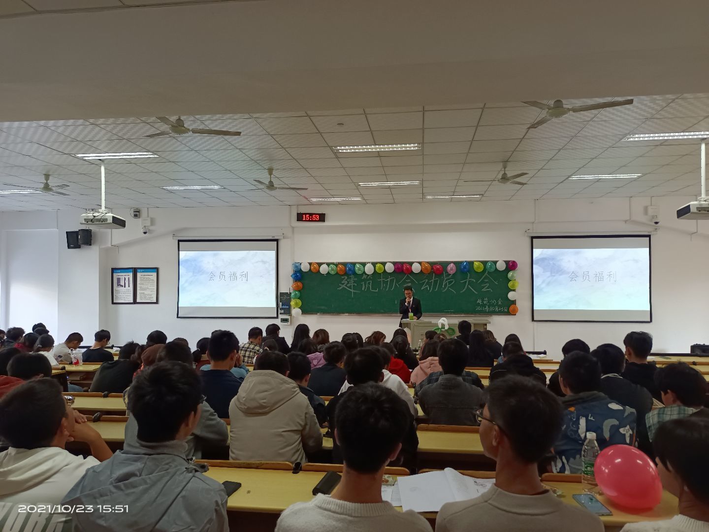 大会通过播放介绍建筑协会的小短片,展示协会往届的优秀作品以及开展的一系列团建活动,增进了会员对协会的了解,也激励了协会的新进干事。