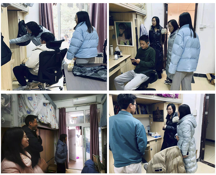 在寝室走访排查过程中,各辅导员重点检查寝室是否有大功率电器、是否存在私拉乱接电线、易燃易爆物品、寝室公物损坏等现象,教育引导同学们切实增强安全防范意识,自觉遵守寝室管理规定,严禁使用大功率电器、私拉乱接电线、存放易燃易爆物品,以高度的社会责任感共同维护校园安全稳定。同时,针对近期重点工作开展了教育提醒:一是要努力复习,诚信应考,坚决杜绝考试作弊;二是要劳逸结合,注意身心健康;三是增强疫情防控意识,自觉遵守教育系统、公司和属地管控政策和要求,杜绝前往中高风险区和出境,坚持每日健康打卡,如实填报个人信息,回家途中注意个人防护;四是离校前断水断电,关好门窗;五是增强安全意识,严防诈骗、防校园贷、防传销、防交通安全等,保护好个人征信和人生财产安全。