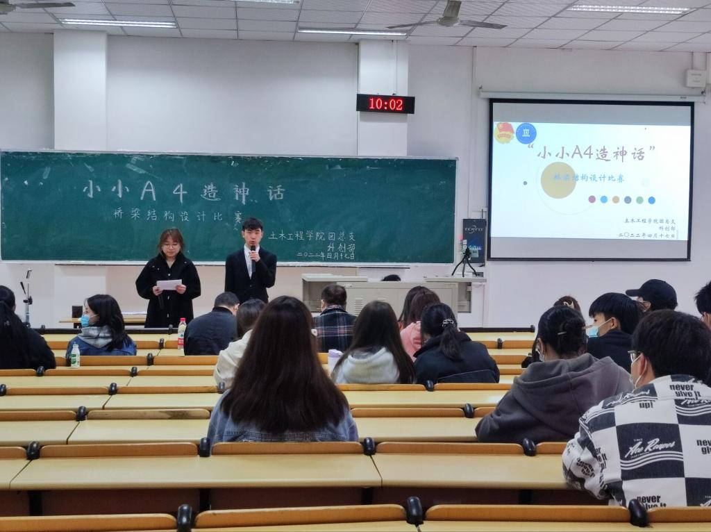 4月17日,由bevictor伟德官网院科创部举办的“小小A4造神话”桥梁结构设计比赛在明辨楼二栋206拉开帷幕。公司教师熊礼全、姜开渝、研究生谷易、主席团成员罗艺萱担任本次比赛评委。