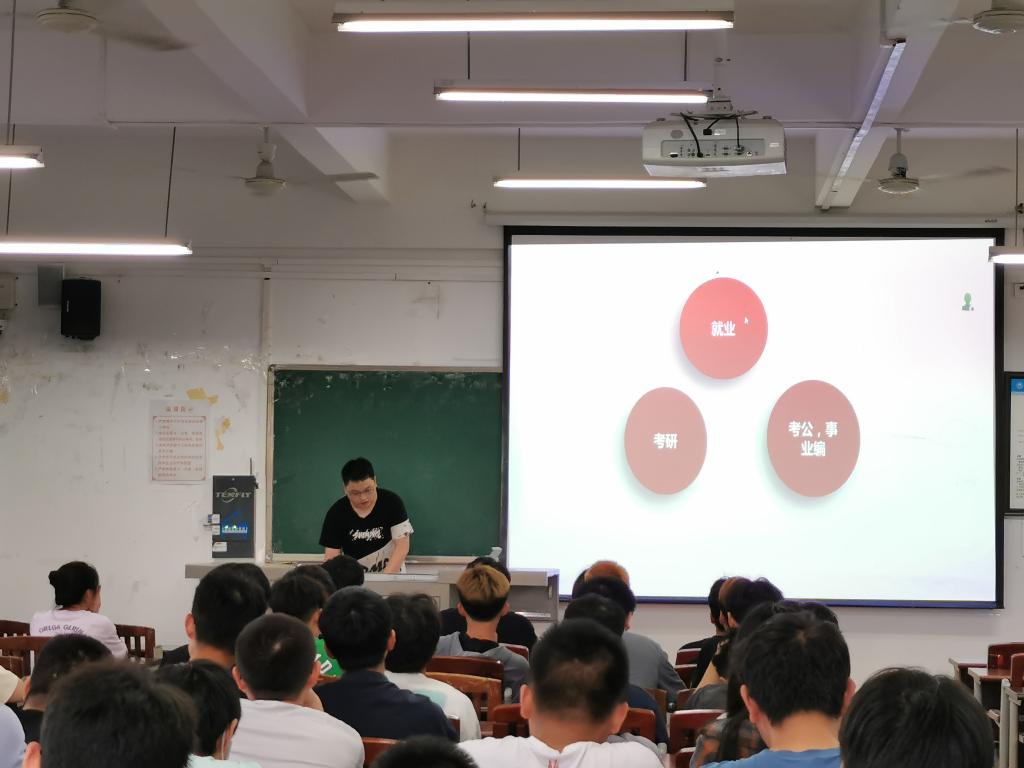为帮助员工明确学习目标、树立职业意识,更好地规划大学学习生活,从而从观念、心态、技能等方面做好应对竞争压力和职业挑战的准备,2022年6月19日晚,bevictor伟德官网院在明辨楼1栋501教室分批召开了“共话就业,启迪未来”职业生涯规划主题班会。班会由辅导员尹鸿老师主持,邀请2022届毕业生张福兴学长主讲,2020级全体员工参加主题班会。