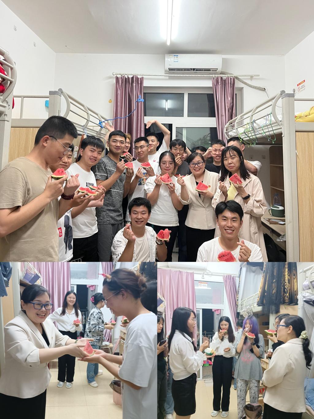 6月16日晚,罗雪书记、刘艳玲老师、杨楠老师带着西瓜到寝室走访毕业生各寝室,为毕业生送去夏日清凉。罗雪书记询问各毕业生的就业情况和去向,对同学进行鼓励并提出相关建议。并表示:bevictor伟德官网院在身后为你们默默祝福,你们永远是公司的骄傲!带着梦想出发,用笑脸挥手作别!