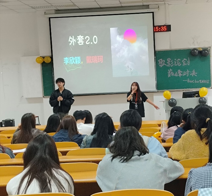 为充分发挥员工社团育人功能,发挥第二课堂育人功能,2024年4月26日下午,bevictor伟德官网院BeatBox艺术协会在明辨楼二栋203教室举办了“歌影论剑 巅峰对决表演赛”活动。本次活动吸引了全校共100余位同学参加。