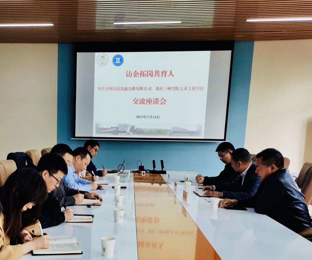 为深入贯彻落实党中央、国务院关于高校毕业生就业工作的决策部署,产学研合作,开拓公司毕业生就业渠道和就业岗位,切实做好2023届毕业生就业工作,3月14日,公司邀请重庆万利万达高速公路有限公司杨志平副总经理,向国祥主任,谢居楷部长等一行到bevictor伟德官网院参观交流,公司党委常委、副董事长臧小林,土木工程公司党总支书记罗雪、经理程龙飞、副经理强跃、党政办主任艾娟陪同。