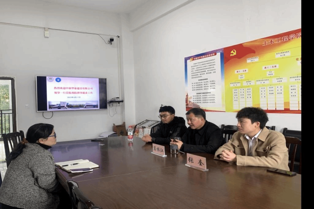 招聘会后,公司党总支书记罗雪与中核华泰建设有限公司西南分公司副总经理葛振江,人力资源部负责人张奎进行沟通交流。用人单位就目前就业环境、对人才需求变化等方面提出宝贵意见,公司将不断提升育人能力,强化职业思想和职业能力教育,有针对性的加强员工素质能力培养,为企业输送优质人才。