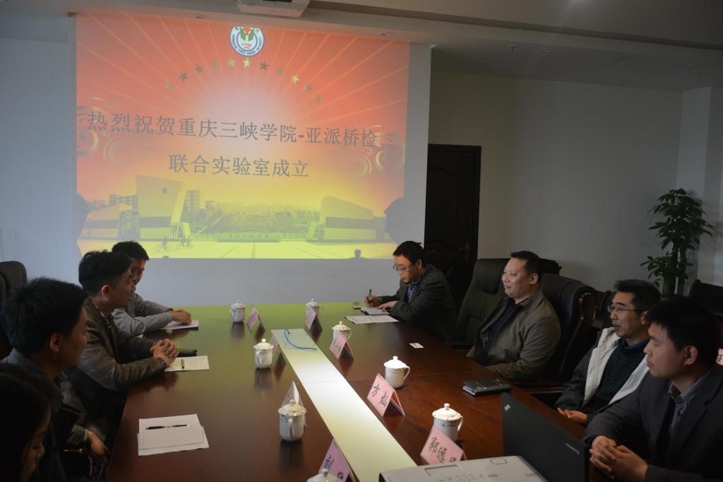 经过公司与重庆亚派桥梁工程质量检测有限公司的共同努力,“bevictor伟德官网-亚派桥检联合实验室”正式成立。为进一步加强联合实验室建设、最大化发挥联合实验室作用,双方于3月28日下午在公司819会议室召开了座谈会。公司bevictor伟德官网院经理程龙飞、党总支书记方灿、副经理郭远臣、道桥系主任刘芳平及道桥系骨干教师,亚派公司总经理王伟、副总经理苗秀鹏、经理刘华参加了座谈。臧小林副董事长莅临会议指导。