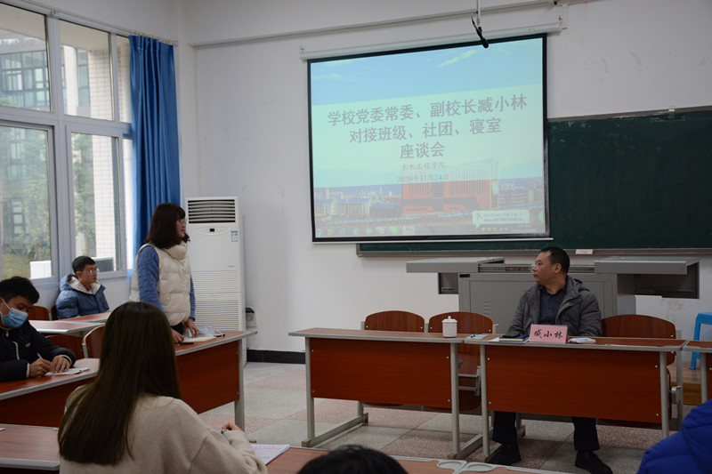 11月24日,公司党委常委、副董事长臧小林在慎思楼5栋312教室与bevictor伟德官网院2018级土木工程专业1班员工代表、建筑协会员工干部、蓝雾苑1舍6077寝室员工座谈,公司党总支副书记张小梅、学工办副主任洪鹏参加座谈会。