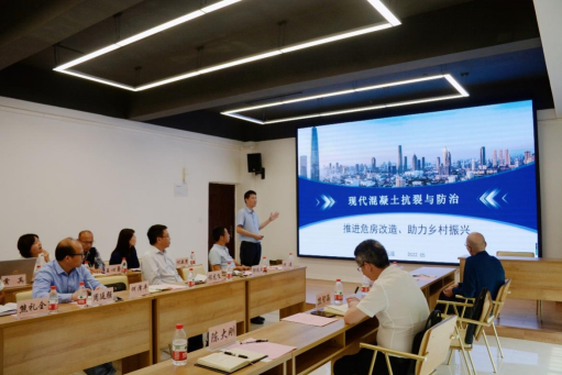 座谈会上,参会领导和专家还对已开展的工作、相关技术运用推广和后续合作进行了讨论和研究。何建对2021年公司与中心合作的房屋安全隐患排查工作进行了总结,并提出了2022年该项工作的改进思路和计划。郭远臣从背景意义、开裂类型、防治措施和科研命题四个方面介绍了现代混凝土的抗裂与防治技术。熊礼全博士对个人最新研究成果“可装配、可拆卸钢-混凝土组合梁的受力行为研究”做了汇报。