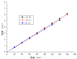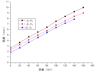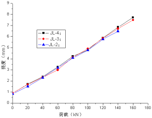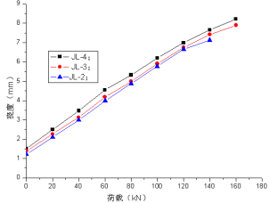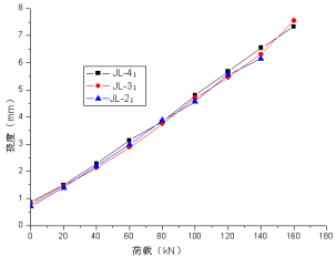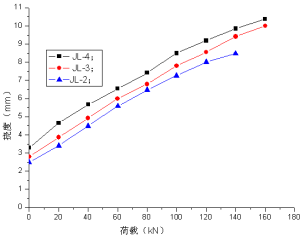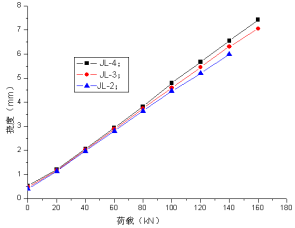 增加的较快,从图中可以看出临近破坏时的刚度退化速率加快。所以,初始退化速率在总体相差不大的情况下,JL-2梁相对较大,JL-4梁相对较小;临近破坏时随荷载水平加大,刚度下降的越快。