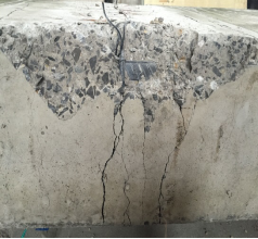 (d)跨中裂缝已经贯通、受压区混凝土压碎
