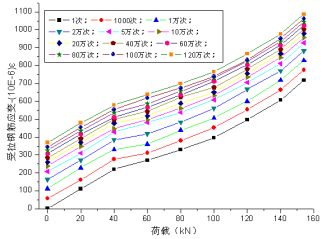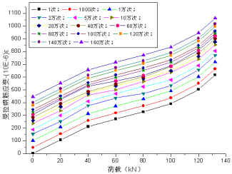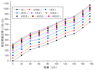 ,测得各个时刻的位移及应变信息,与此同时对每次疲劳荷载上限