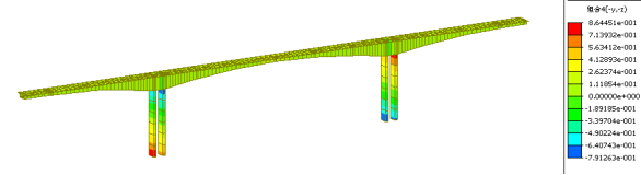(1)桥墩采用三维梁单元来模拟,截面按设计的实际截面取值。
