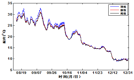 (2)箱梁内温度全年最高温度发生在7月25日至8月5日之间;最低温度出现在1月上旬和12月下旬;
