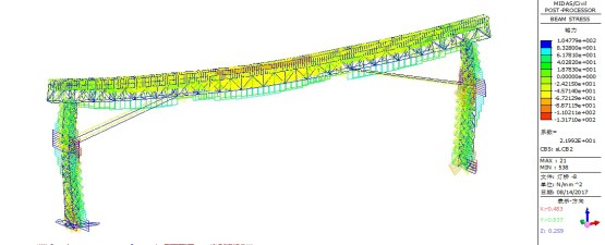 2.通过此教学案例,使研究生仿真分析软件Midas应用于铁路跨线固定灯桥安全性及加固措施仿真分析过程中,使员工进一步了解工程软件在钢箱梁施工过程中的应用。