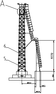 灯桥主梁均采用标准节段组成,梁的节间尺寸为3m,梁高1.5m,梁上部设置有1.1m高栏杆;标准梁主要材料为:主肢为角钢L75×8,横梁端腹杆L100×8,横梁端竖杆、腹杆L63×5,横梁竖杆、腹杆L50×5。立柱主肢均为L140×10,立柱横撑1为L63×5,立柱横撑2为L75×6,立柱顶板采用1600×1100×12钢板。钢材均采用Q235B钢材。灯桥结构布置如下图1-图3所示。