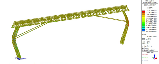 图22标准组合下灯桥一阶屈曲模态(稳定系数:4.26)