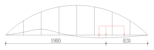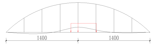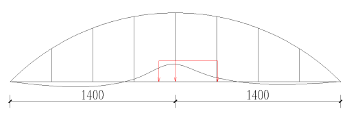 工况2:主拱及系梁L/4截面最大正弯矩加载;