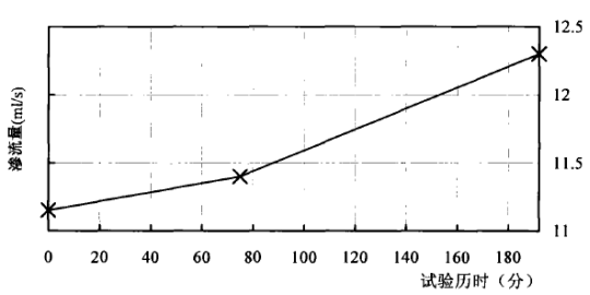 而真实的时间应在两者之间并偏向完全紊流的结果,而管涌通道与外水连通时的渗流量应在151.3-530.6 ml/s之间。