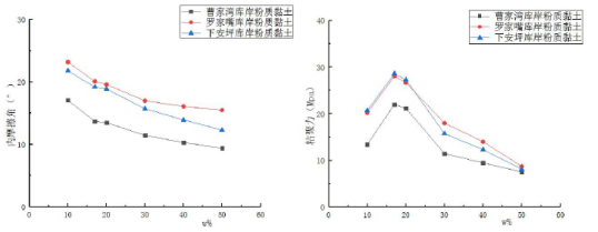 图4 含水量与抗剪强度参数之间的关系