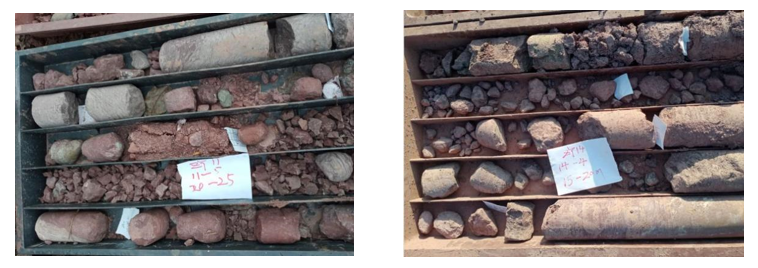 值得注意的是上部含块碎石粉质粘土中也局部集中有块碎石土分布,在块碎石土层中局部也有黏性土夹碎块石,个别钻孔揭露块碎石土层底部有可塑~硬塑状粘性土夹泥岩角砾、碎石,系泥岩块碎石风化、泥化形成。