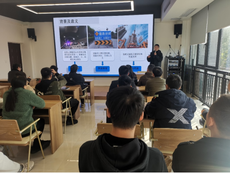 本次活动分为两个阶段。第一阶段,公司副经理、硕士生导师郭远臣教授为师生们做了题为《混凝土结构病害先进修复材料及技术》的报告,介绍了其团队以智能修复、快速修复、超高修复为背景的先进修复材料研究成果。该项成果解决了微观损伤修复的技术难题,降低了修复成本,提高了混凝土结构的安全性。报告结束后,郭远臣教授与在场师生进行了热烈的互动,并耐心解答了师生提出的相关问题。