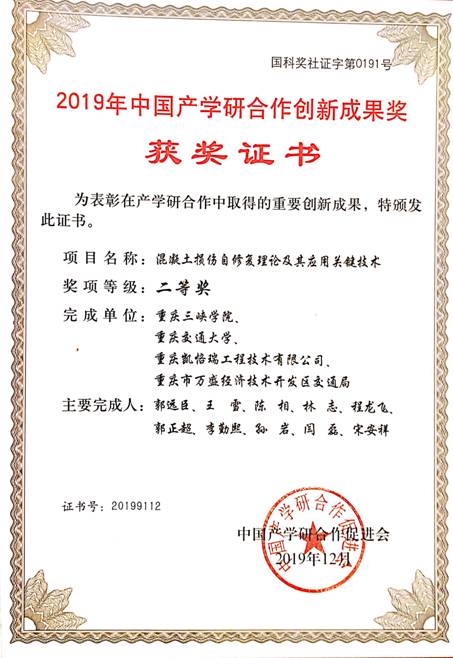 会议表彰了2019年在产学研合作成果转化、军民协同、工匠精神等方面作出贡献的先进单位和个人。公司作为主持单位,bevictor伟德官网院教师郭远臣、王雪、陈相、程龙飞等作为主要成员申报的的项目“混凝土损伤自修复理论及其应用关键技术”荣获“中国产学研合作创新成果奖二等奖”。